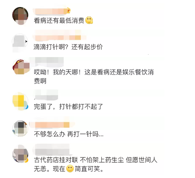 该卫生室大字标明其为“城镇职工医保定点单位”。卫生室在玻璃门显眼位置挂着印有“打针输液请进60元起”贴纸。有网友评论说,“但愿世间人无病”的医者仁心一去不复返了,还有人表示如今卫生室都开始有最低消费,以后生病都生不起了。