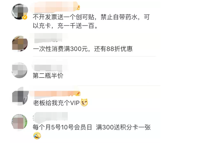 还有网友神评论:“谢绝自带药水”“有满减套餐吗?”