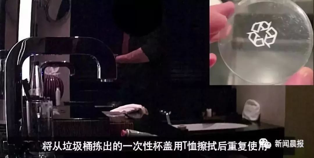 捡出一次性杯盖,继续给客人使用。