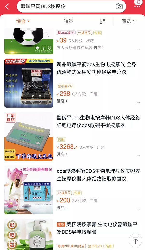 但截至目前,小编整理这篇报道时,发现在淘宝、京东等电商平台,输入搜索河北华林、酸碱平DDS等关键词时,仍有部分该系列产品在售卖,售价从几百元至几千元不等。