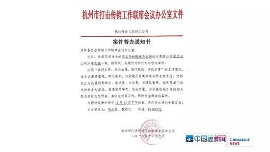 据介绍,这次培训是由河北华林酸碱平生物技术有限公司浙江分公司主办的,淳安是分公司注册地。1月 9日,杭州市打击传销工作联席会议办公室以"河北华林酸碱平技术有限公司浙江分公司涉嫌传销"为由,向淳安县下发案件督办通知书,责成当地立即成立联合专案组,查清案件事实、依法处置。