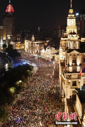 10月2日晚,上海外滩核心区域客流人数最高瞬时值达7.1万人。中新社记者 殷立勤 摄