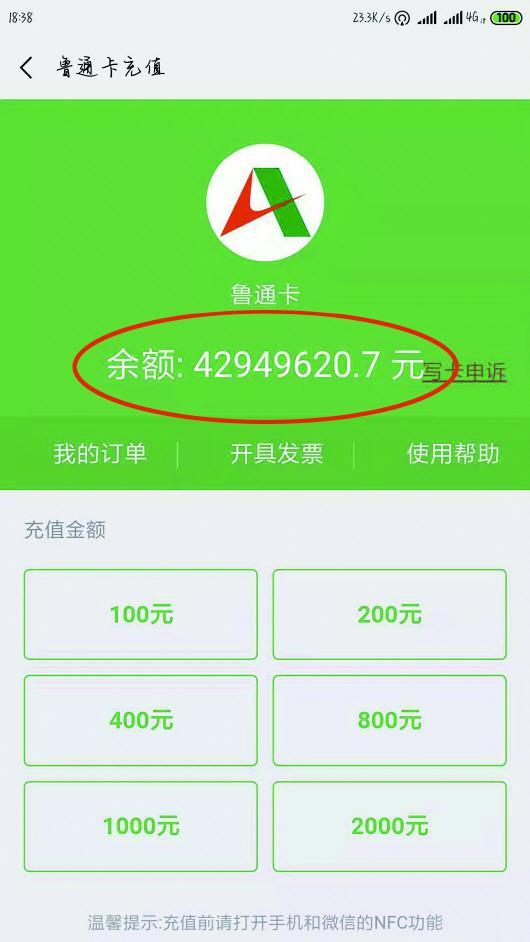 是否如杨先生反映的这般,这张鲁通卡存在着数据异常呢?17日,记者联系了鲁通卡的客服工作人员。该工作人员查询杨先生办理的鲁通卡后表示,该车主办理的鲁通卡A卡,A卡需要绑定银行卡,从银行卡中进行扣费。如果A卡靠近手机背面,会显示一个虚拟的余额,有的余额会是负数,有的会是其他数字。目前杨先生的这张鲁通卡处于黑名单状态,原因是扣费失败,交易账户余额不足。客服人员解释,如果是鲁通卡B卡,靠近手机背面,则会在相应程序上显示出余额,这个余额是真实有效的,因为B卡是先缴费后使用。