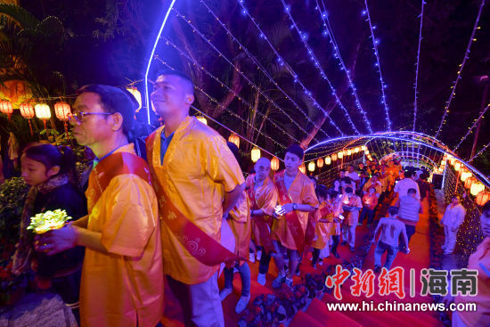 12月31日晚,在中国最南端的佛教道场--三亚南山举行撞钟祈福迎新系列民俗文化活动,南山寺全体僧众和来自各地的游客以撞钟迎新年的传统习俗,敲响祖国最南端的108响吉祥钟声,祈福国泰民安,迎接2017年的到来。(编辑:马芳)