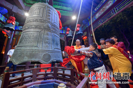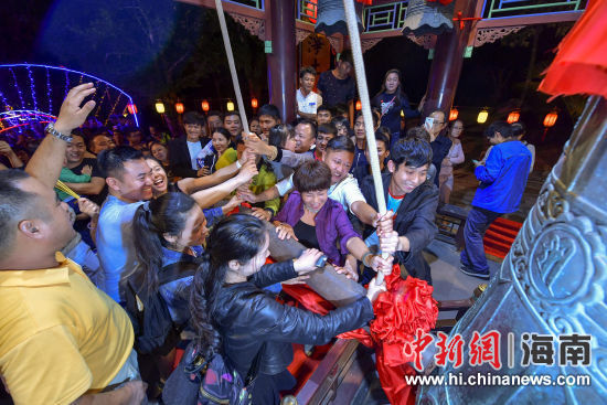图为三亚南山游客敲吉祥钟迎新年。骆云飞摄