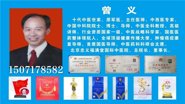 个人简介1972年高中毕业,1973年元月参加中国人解放军,1978弟四军医大学全科毕业,1983年中医学院全科毕业,1989年医院上,1990办个体中西医结合门至今办个体诊所。1996省人事厅评审为,主任医。在后市评为中西医专家,中医优秀人才,长江三峡名医,个人先进者,诚信单位,中医博士,院士专家,中医药传承导师,中医药全科教援,高级讲师,中医药科研会主席,首席国医导师,新时代国医大师,国医名师,新时代楷模,国家栋梁,被中国质量认证监督管理中心和中国企业信用评估中心,公众投票,行业信息权威对,经组委会专家组一致审核通过,荣获,中医药行业最具影响力人物。新时代国医文化传播大使,中国管理科学研究院,国医文化传承委员会颁发证书,!,肿瘤癌症研究,国医肿瘤传承导师,代表性传承人:曾义为曾参圣中医世家笫十代承人,华健百科中医肿瘤研究院聘任研究院付院长,北京忠义福堂国际中医院,院长,法人,负责人。