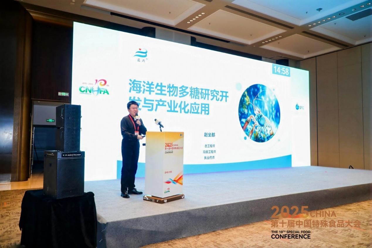 10月26日,厦门蓝湾科技有限公司总工程师赵坐都在“海洋生物多糖研究开发与产业化应用”主题报告中,从“国家视角:海洋经济与战略定位”、“海洋多糖:多糖原料创新研究与产业化应用”、“时代机遇”、“产业展望”四个维度,向中外代表介绍说:“国家海洋经济规划将海洋生物医药列为核心,特殊食品行业进入‘原料升级’阶段,海洋天然功能原料正成为催生更大规模市场的创新‘命门’。”赵坐都说:“海洋经济在国之大局中已由量到质的加速转型,海洋活性物质研发与应用正处于战略高点。高创新性、绿色化、深海探索、海洋生物活性物质与医药技术成为重要发力方向。”
