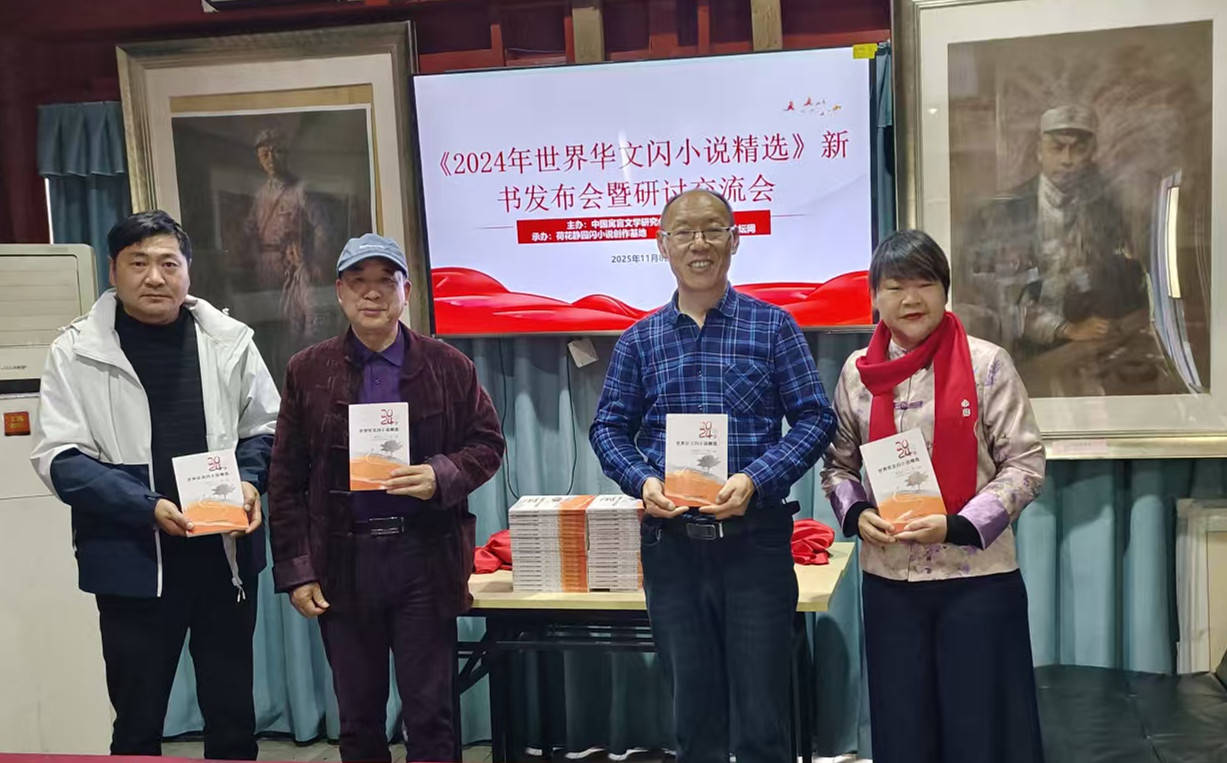 2025年11月8日,由中国寓言文学研究会闪小说专业委员会主办,花静园闪小说创作基地承办,小说作家网协办的《2024年世界华文闪小说精选》新书发布会暨研讨交流会在江苏溧阳成功举办。世界华文微型小说研究会会长凌鼎年、泰国《中华日报》副刊主编梦凌等来自海内外的知名作家、评论家、编辑,溧阳市荷花静园有限公司董事长马英网,以及溧阳本地闪小说作家们参加会议。会议由中国寓言文学研究会闪小说专委会主任程思良主持。