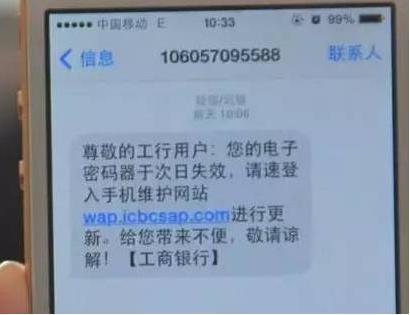 发来的这种短信:“尊敬的X行用户,您的电子密码器于次日时效,请速登陆手机维护网站:wap。。。进行更新。给您带来不便,敬请谅解。”让你进行实名补录、升级等,一定要注意,这是不法分子利用伪基站,冒充“银行”,发送植入木马病毒的短信实施诈骗。一旦你点击了短信中的网址链接,银行卡中的钱很可能就瞬间被盗。