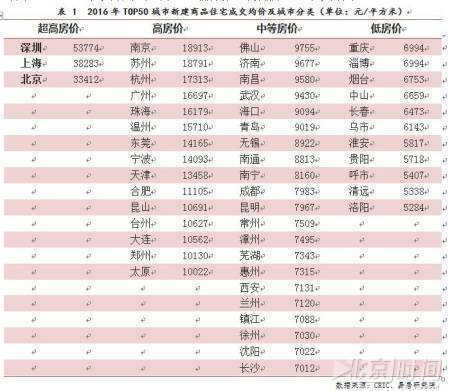 而从房价来看,排行前三位的城市分别为深圳、上海和北京。三个城市的去年新房成交均价分别为每平方米53774元、38283元和33412元。合肥以11105元的价格排在第13位。