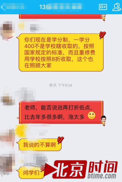 4月10日,王路的辅导员在学院QQ群中通知,重修费“一学分400”,并表示为了照顾同学,按照国家规定标准的八折收取。