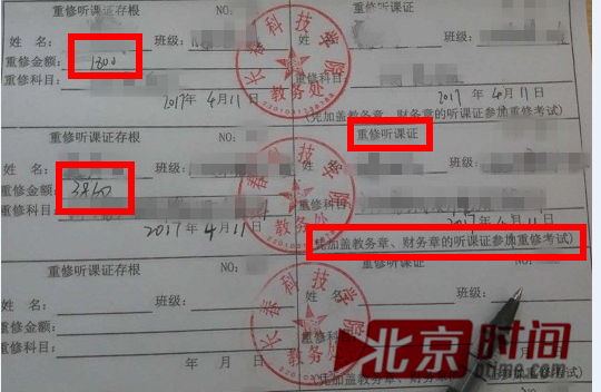 学院教务处工作人员向北京时间“此刻”(微信号:btimenow)证实,他们确实在收取重修费,“我们是报省教育厅备案,按照标准来收费的,各项手续齐全”。