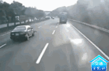 GIF图:爆胎引发的交通事故 令人触目惊心