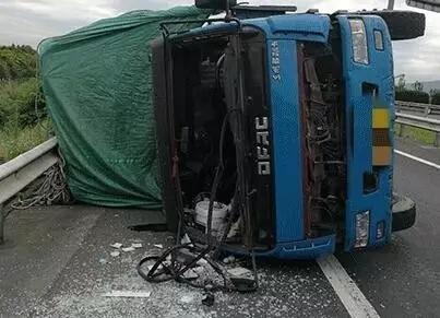 一辆货车侧翻在G25长深高速东洲岛收费站匝道上