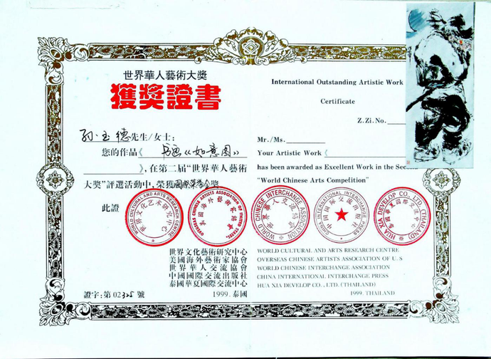 2、《如意图》获第二届世界华人艺术“金奖”
