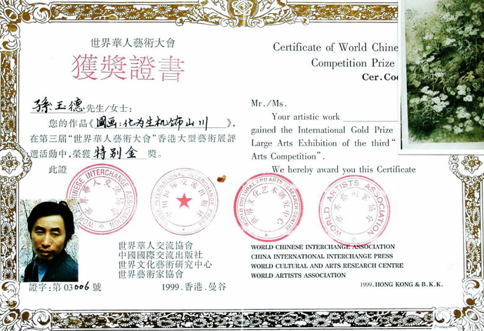 1、《化为生机饰山川》获第三届世界华人艺术大会“特别金奖”