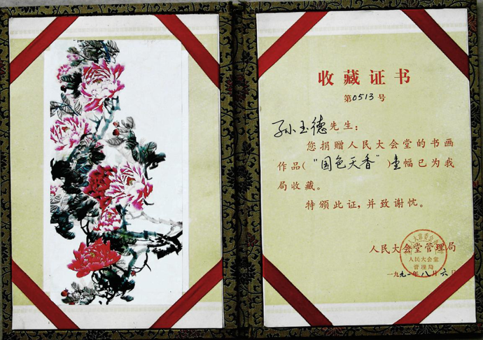 孙玉德老师在写意牡丹绘画理论探讨和创作实践中,积累了一点一滴的直接经验,形成了立体牡丹绘画系列教程。编讲了立体牡丹入门篇,提高篇,创作篇,研究篇,成才篇,欣赏篇共六部五十九集专题牡丹电视教学片,全部在中国教育电视台反复播出,长达十年之久,在国内国际产生良好的影响。人民大会堂,中南海等国家重要机关都收藏了作品,国内权威刊物《美术》杂字,人民日报等都先后发表了多幅作品和文章,人民美术出版社出版的《案头画凡》先后再版五次,数年畅销,辽宁美术出版社出版的《中国美术家精品集孙玉德牡丹专辑》现已在网上公开高价拍卖。