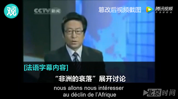 观网小编在观看视频后发现,视频编辑者不但为这段采访片段配上了主持人白岩松在演播室的虚假片头片尾,其间的字幕内容与视频中吴大使与白岩松的表情动作相配后,二人“对非洲的恶意”已经“赤裸裸地”从屏幕中散发出来,细品之后其“效果”简直令人目瞪口呆。